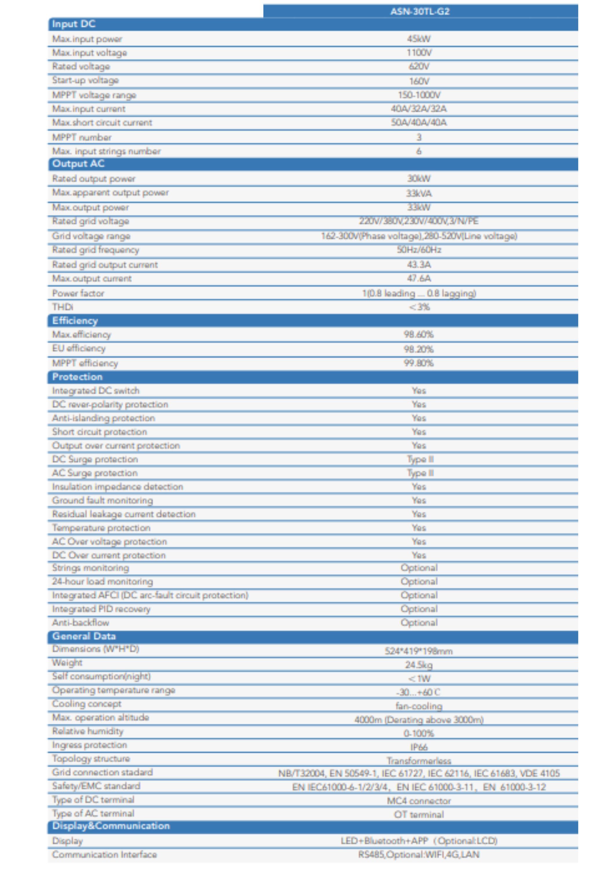 1. Tham khảo Datasheet: Auxsol datasheet ASN-30TL-G2