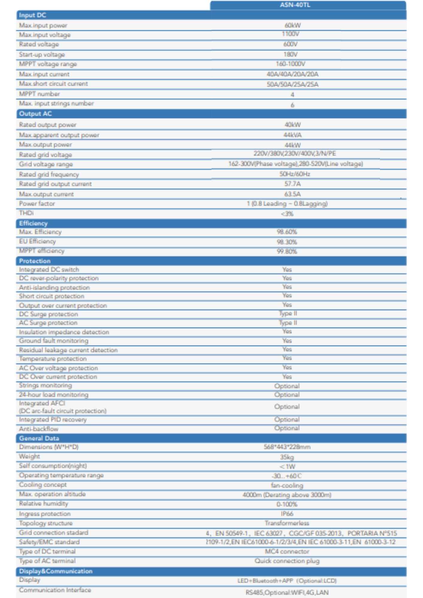 1. Tham khảo Datasheet: Auxsol datasheet 40kW ASN-40TL