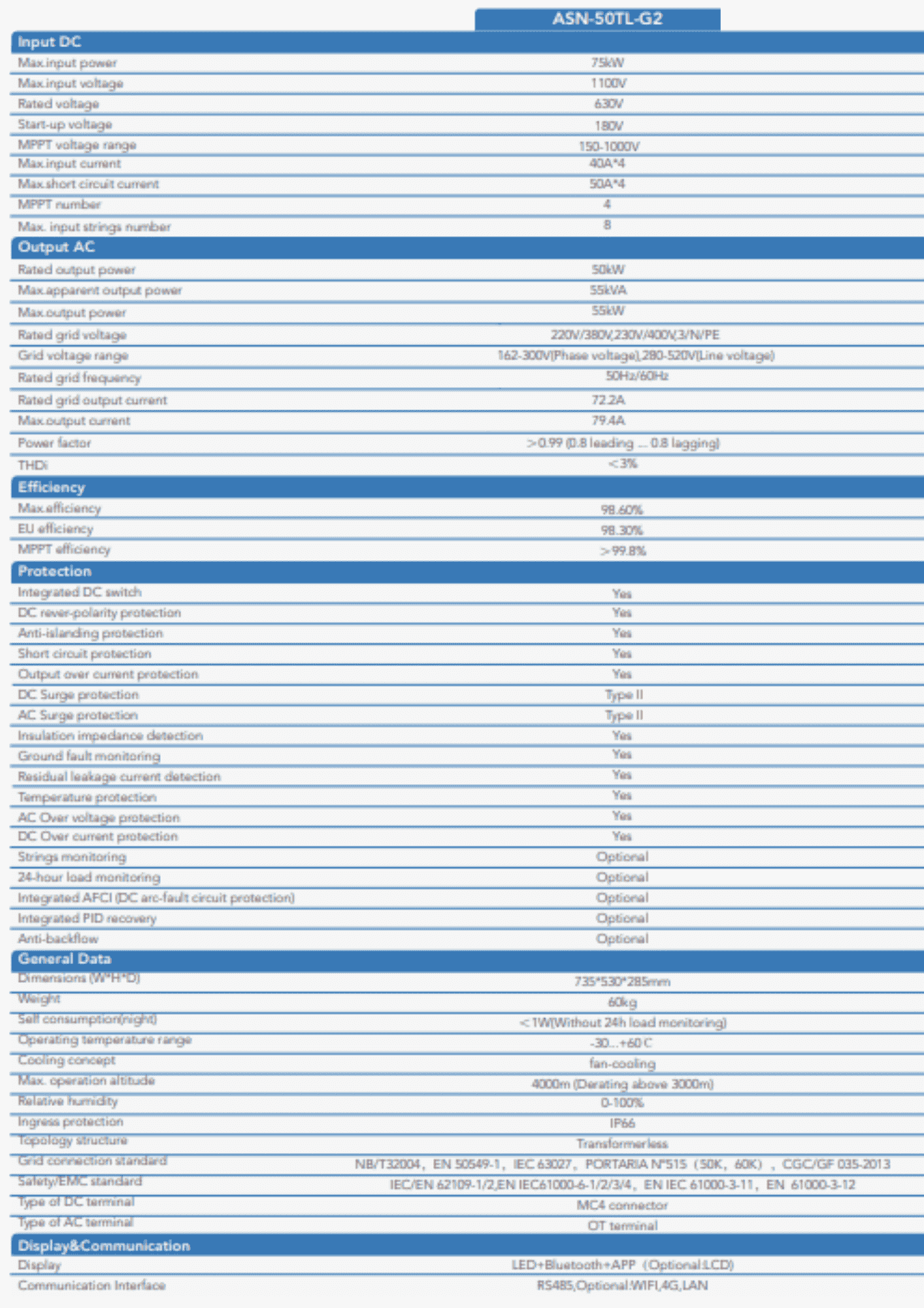 1. Tham khảo Datasheet: Auxsol datasheet 50kW ASN-50TL-G2