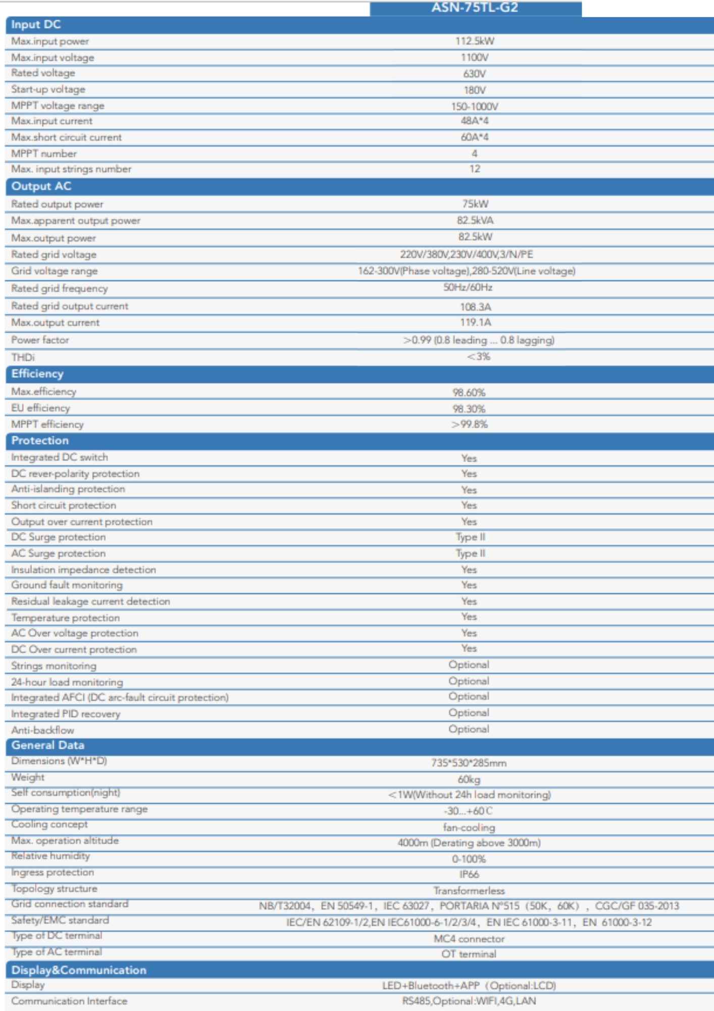 1. Tham khảo Datasheet: Auxsol datasheet 75kW ASN-75TL-G2