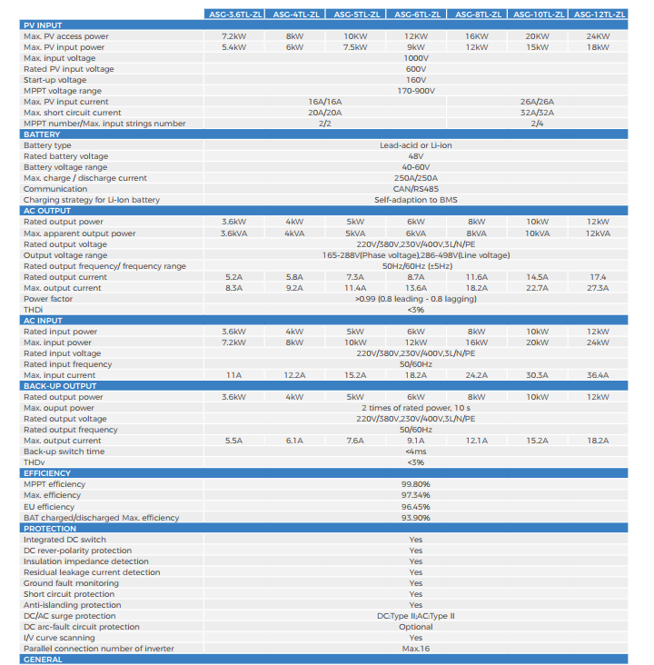 1. Tham khảo Datasheet: Auxsol datasheet Inverter Hybrid Auxsol 12kW ASG-12TL-ZH