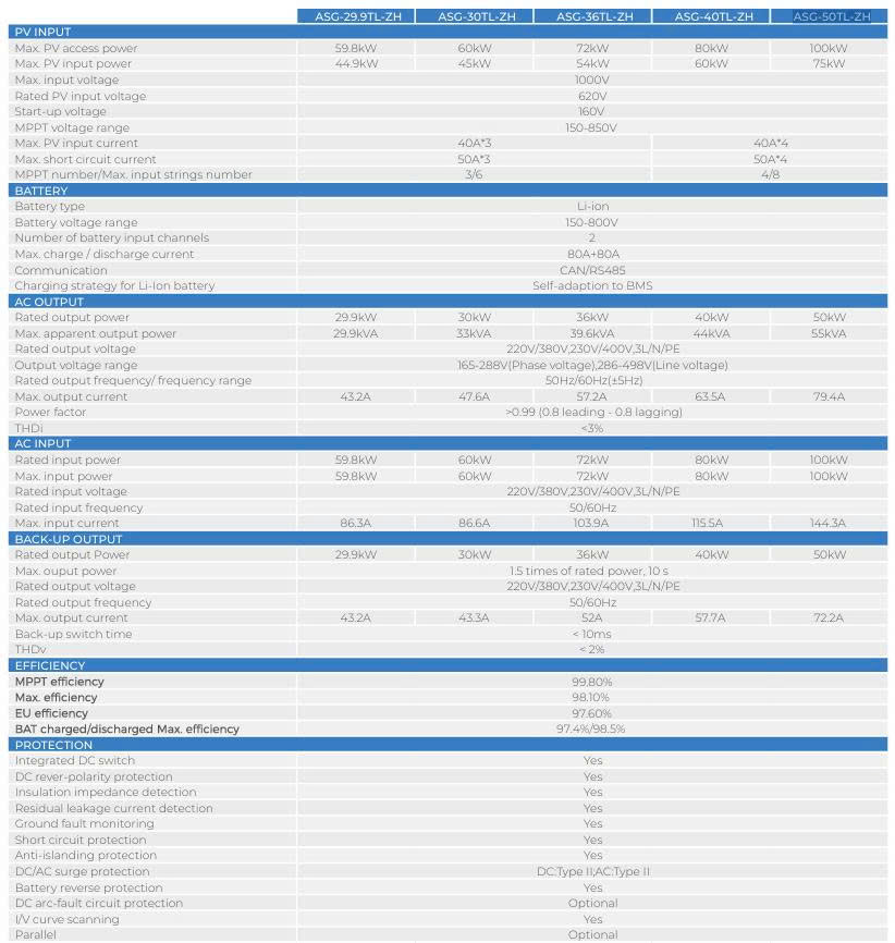 1. Tham khảo Datasheet: Inverter Hybrid Auxsol 50kW ASG-50TL-ZH