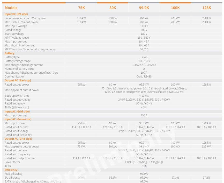 Thông số kỹ thuật của Inverter Hybrid Solis S6-EH3P99.9K10-NV-YD-H: