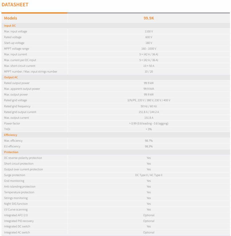 1. Tham khảo datasheet: Inverter Solis 3 pha 99.9kW S6-GC99.9K - Inverter 99.9kW