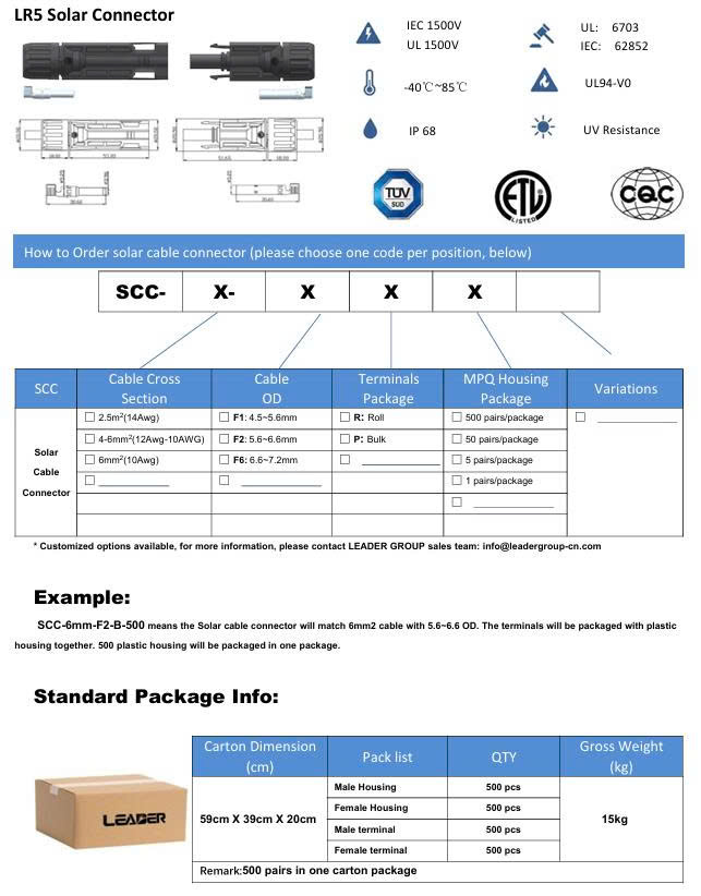 Tham khảo: Datasheet MC4 Leader LR5 Solar Connector