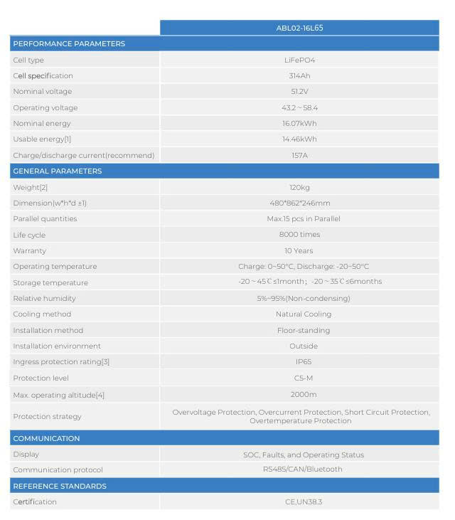 Thông số kỹ thuật của Pin lưu trữ Auxsol ABL02-16L65: