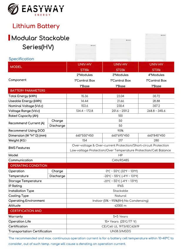 Pin Lithium Easyway UNIV-HP ST31k là dòng pin lưu trữ năng lượng mặt trời thế hệ mới bảo hành 10 năm và 8000 vòng sạc xả.