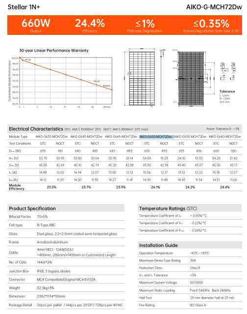 Tham khảo: Datasheet Tấm Pin AIKO-G650-MCH72Dw