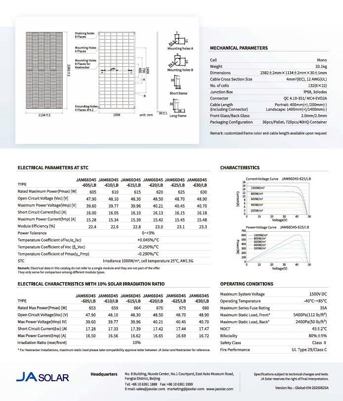 Thông số kỹ thuật Tấm Pin JA 620W JAM66D45 620/LB: