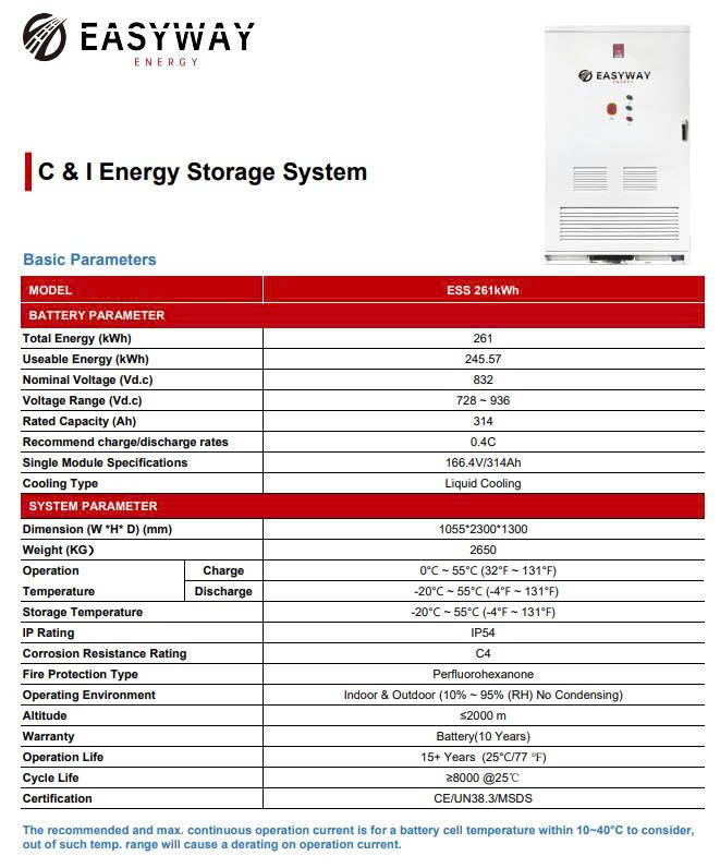 Tham khảo: Datasheet Pin Lithium Easyway ESS 261kWh+125kW